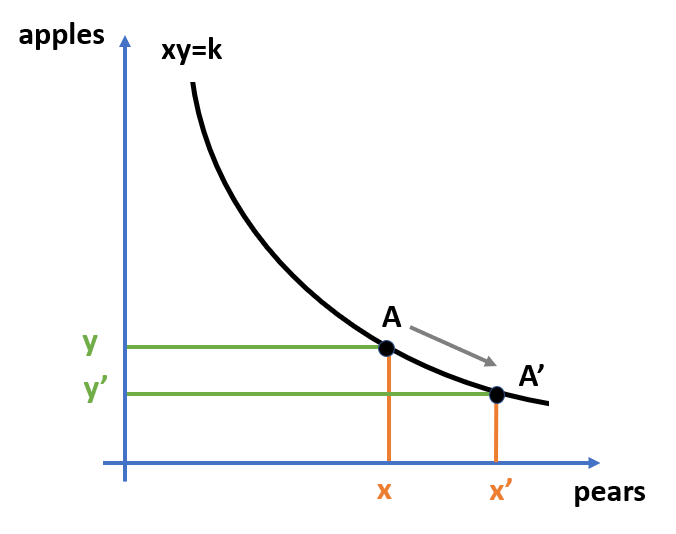 成本设定在双曲曲线的点上,由表示流动性池中资产余额的变量设定。